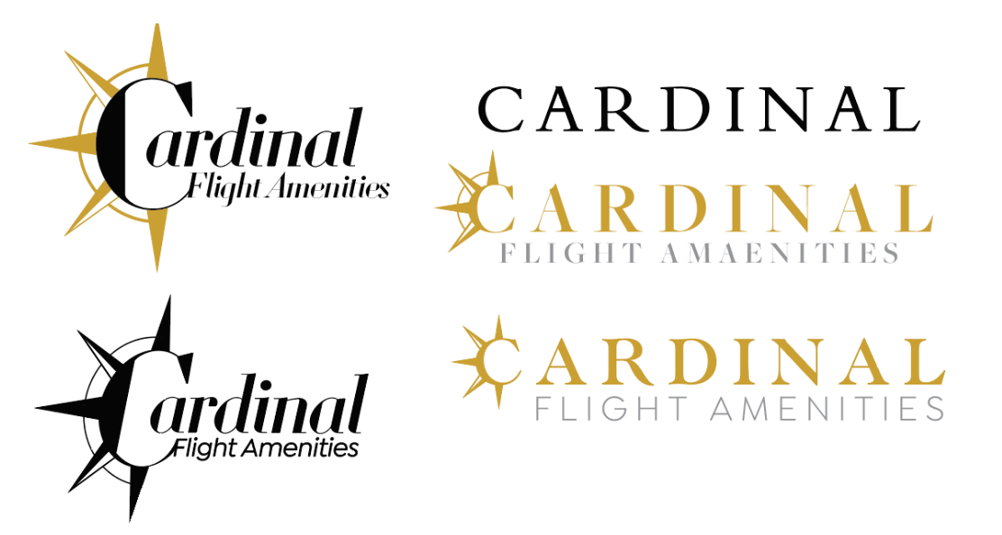 Cardinal Inflight Amenities is meant to be a brand that exudes sleekness to match that business class environment it would be used in. In order to match this tone with our graphics, we chose a charcoal pigment for our base, a darker black to emphasize detail and texture, and gold to serve as a compliment to pull the design together. We wanted our design to echo the luxurious look of the Art Deco era.